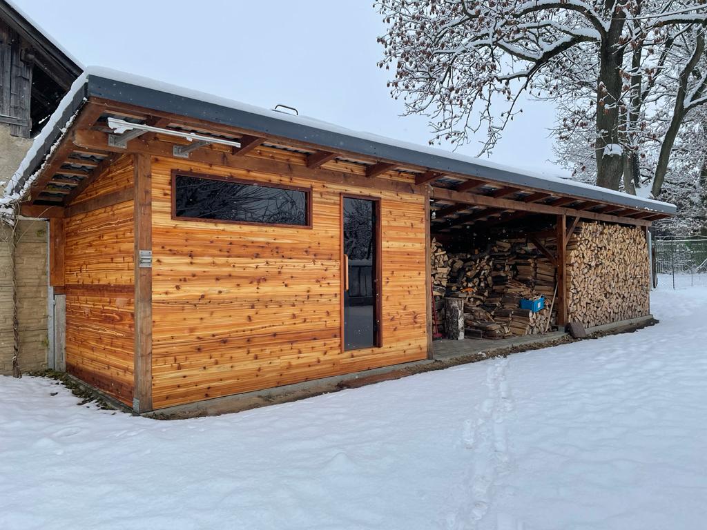 Saunový dům lze umístit jak na zahradu, tak na terasu, kde bude tvořit moderní a jedinečný prvek. Skleněné dveře a okna zpříjmení saunování výhledem do okolí.
